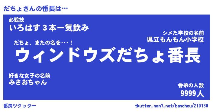 | ファンタジー風あだ名 | 『ダチフェル』『エターナルダチョー』 |