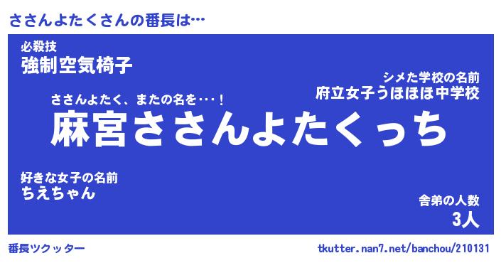 | 伝説のあだ名 | 『不死鳥のスナイパーささんよたく』 |