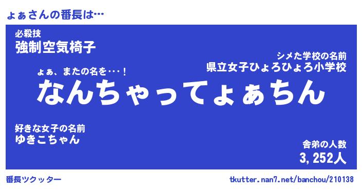 | 2回繰り返すあだ名 | 『ょぁょぁ』『ょょぁぁ』『ぬめぬめ』 |