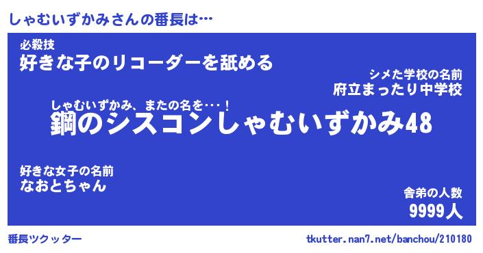 | 伝説のあだ名 | 『封印されしスナイパーしゃむいずかみ』 |
