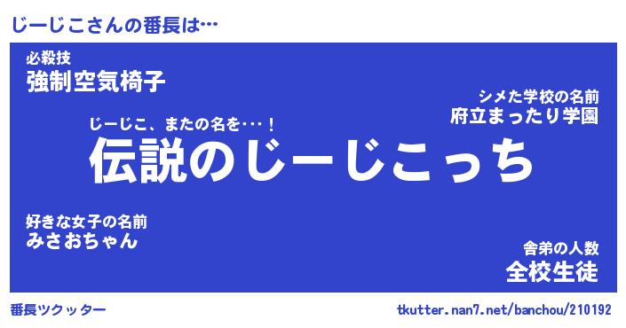 | 伝説のあだ名 | 『伝説のスナイパーじーじこ』 |