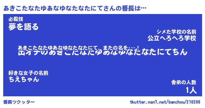 | 肩書あだ名 | 『あきこたなたゆあなゆなたなたにて御曹司』 |