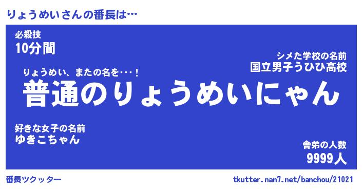 | ファンタジー風あだ名 | 『リョフェル』『エターナルリョウメイー』 |