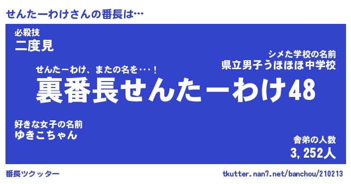 | 伝説のあだ名 | 『不死鳥のスナイパーせんたーわけ』 |