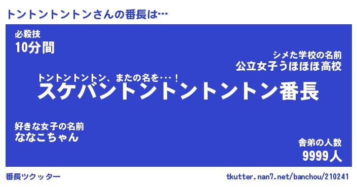 | 男性向けラノベタイトル風あだ名 | 『トントントントンアートオンライン』 |