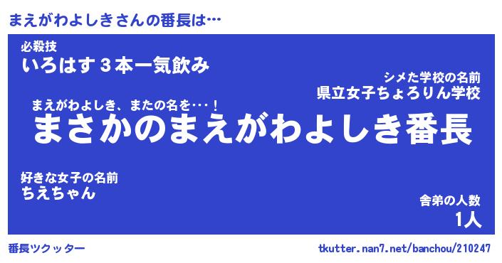 | 意味不明あだ名 | 『ペロリンまえがわよしき』 |