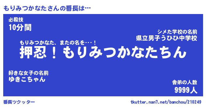 | 伝説のあだ名 | 『封印されしスナイパーもりみつかなた』 |