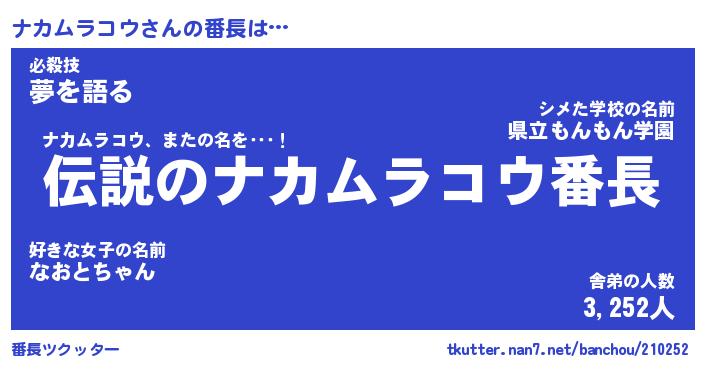 | 肩書あだ名 | 『ナカムラコウ店長』『ナカムラコウ団長』 |