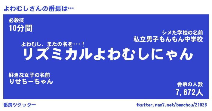 | 意味不明あだ名 | 『ペロリンよわむし』『永久保存よわむし』 |