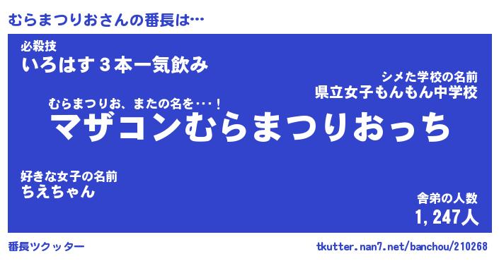 | 意味不明あだ名 | 『ペロリンむらまつりお』 |