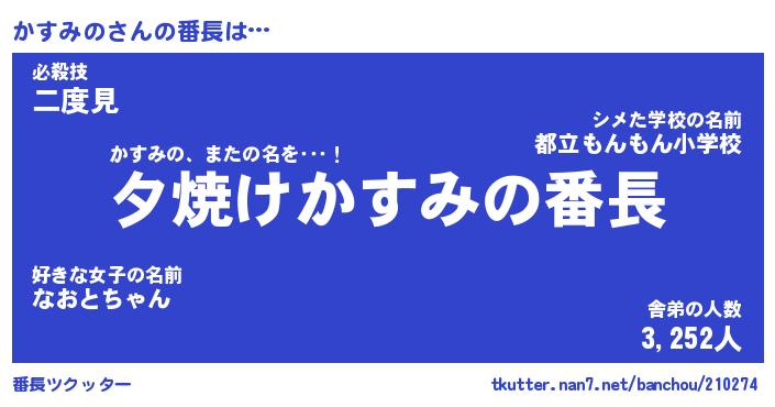 | ヘコむあだ名 | 『かすにゅー』『酢こんぶ』『かすお』 |