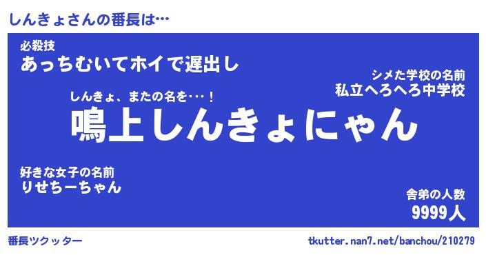 | 意味不明あだ名 | 『ペロリンしんきょ』『永久保存しんきょ』 |