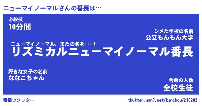 | 意味不明あだ名 | 『ペロリンニューマイノーマル』 |