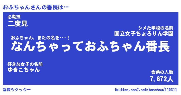| 猫の名前『おふちゃんにゃん』性別『雄』 |