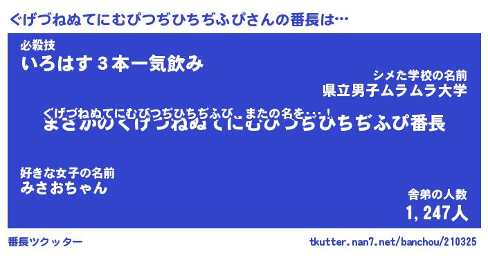 | 肩書あだ名 | 『ぐげづねぬてにむぴつぢひちぢふぴ社長』 |