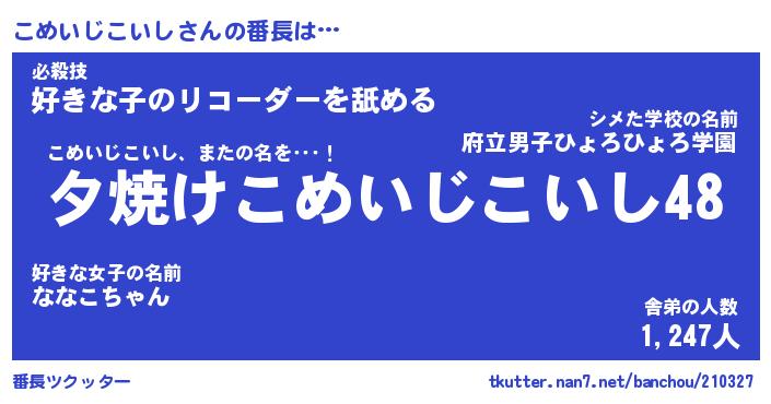 | 伝説のあだ名 | 『封印されしスナイパーこめいじこいし』 |