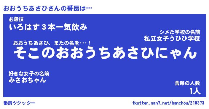 | 肩書あだ名 | 『おおうちあさひ御曹司』 |