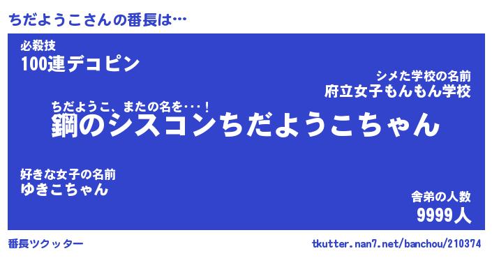 | 伝説のあだ名 | 『封印されしスナイパーちだようこ』 |