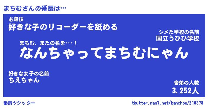 | 男性向けラノベタイトル風あだ名 | 『まちむの憂鬱』 |