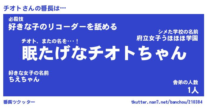 | ファンタジー風あだ名 | 『チオフェル』『エターナルチオトー』 |