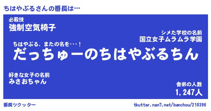 | ファンタジー風あだ名 | 『チハフェル』『エターナルチハヤブルー』 |