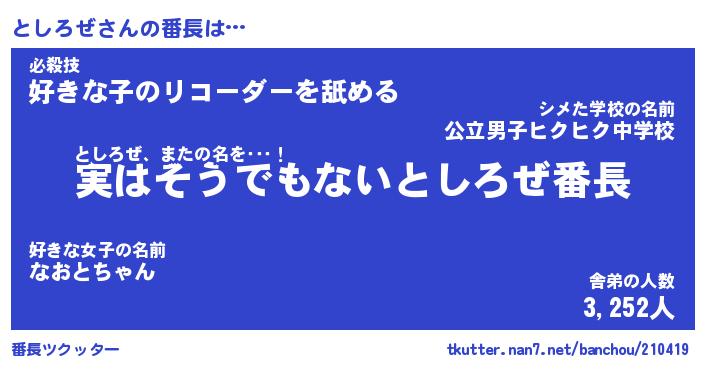 | 意味不明あだ名 | 『ペロリンとしろぜ』『永久保存としろぜ』 |