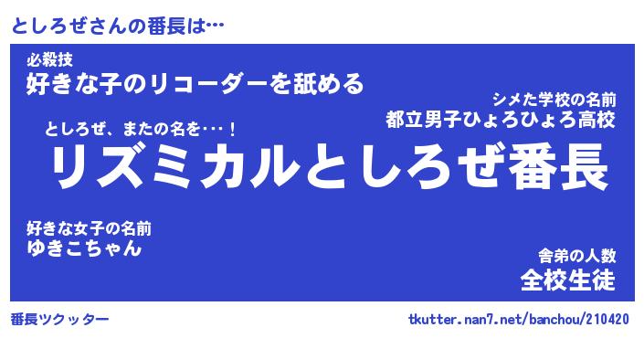 | 意味不明あだ名 | 『ペロリンとしろぜ』『永久保存としろぜ』 |
