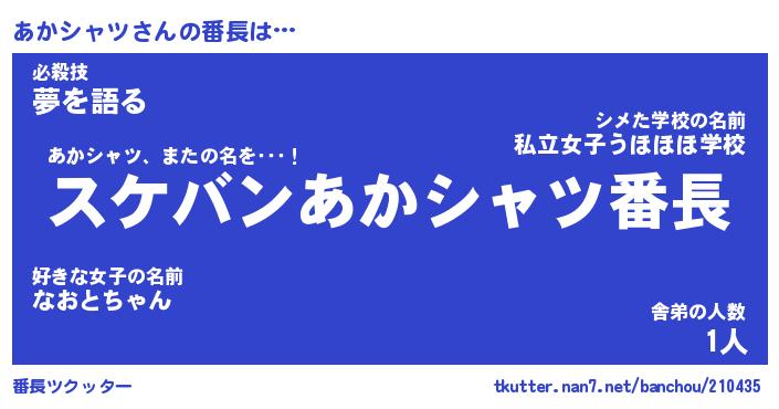 | 男性向けラノベタイトル風あだ名 | 『アカシャツアートオンライン』 |