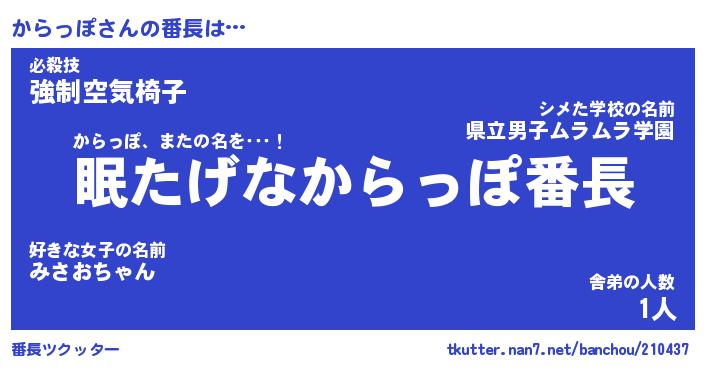 | 意味不明あだ名 | 『ペロリンからっぽ』『永久保存からっぽ』 |