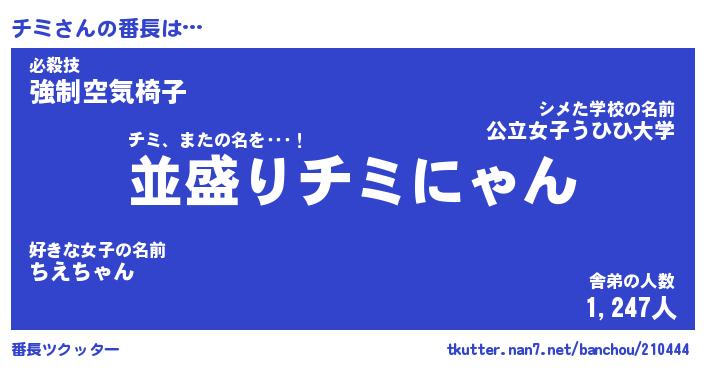 | 2回繰り返すあだ名 | 『チミチミ』『チチミミ』『げこげこ』 |