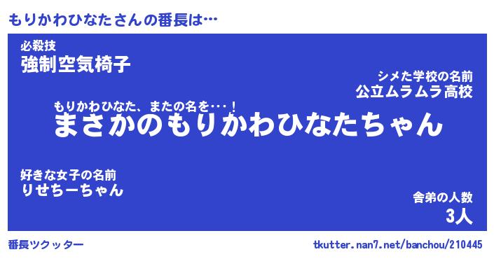 | 伝説のあだ名 | 『伝説のスナイパーもりかわひなた』 |