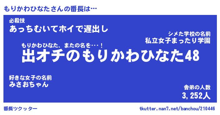 | 恥ずかしいあだ名 | 『プリティーもりかわひなた』『もりちん』 |