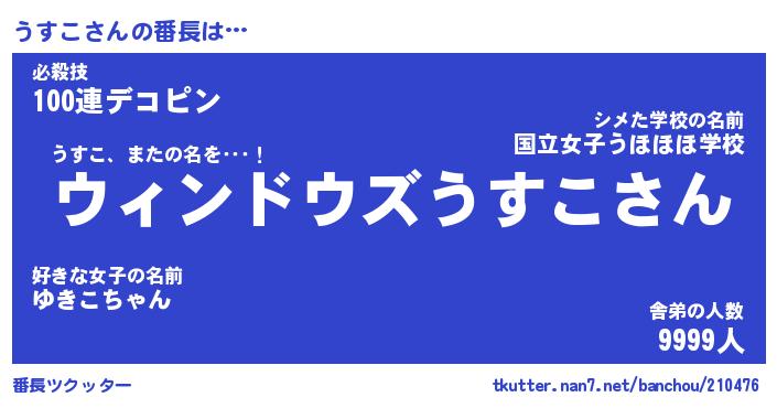 | ポケモン風あだ名 | 『ウスチュウ』『ウスコダネ』 |