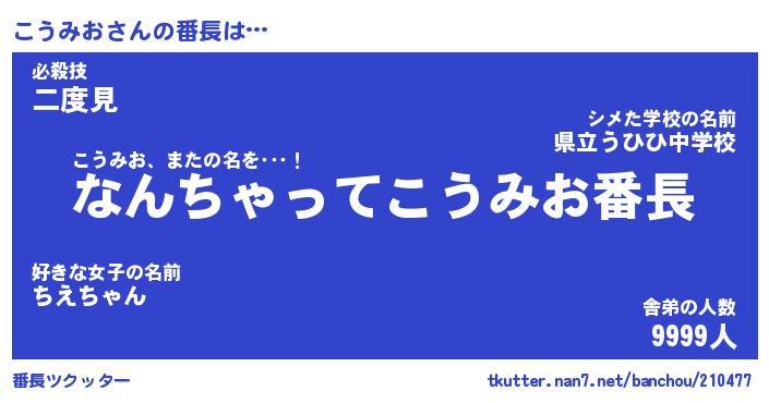 | 伝説のあだ名 | 『伝説のスナイパーこうみお』 |
