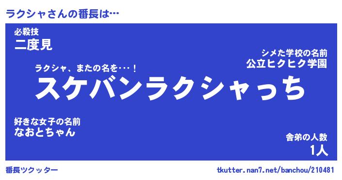 | 肩書あだ名 | 『ラクシャ店長』『ラクシャ総理大臣』 |