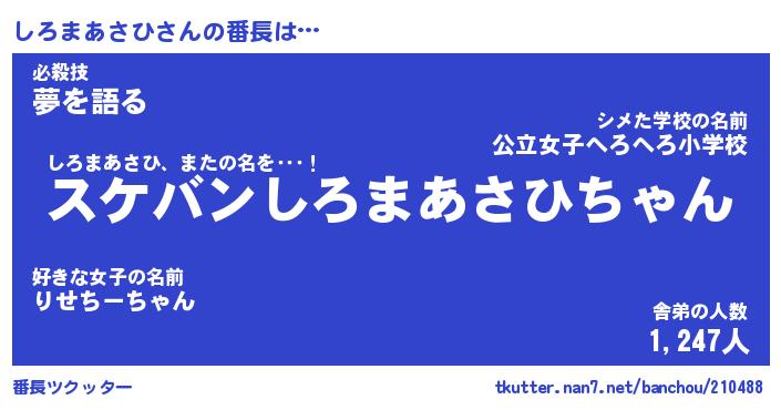 | 伝説のあだ名 | 『不死鳥のスナイパーしろまあさひ』 |