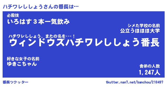 | 胡散臭い通販商品みたいなあだ名 | 『必ず成功するブレスレット…その名も「ハチワレししょう」』 |