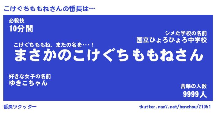 | 男性向けラノベタイトル風あだ名 | 『こけぐちももねの憂鬱』 |