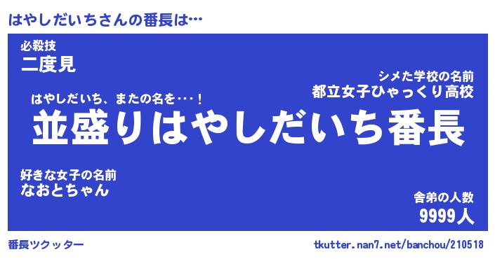 | 肩書あだ名 | 『はやしだいちCEO』『はやしだいち大統領』 |