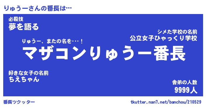 | 意味不明あだ名 | 『ペロリンりゅうー』『永久保存りゅうー』 |