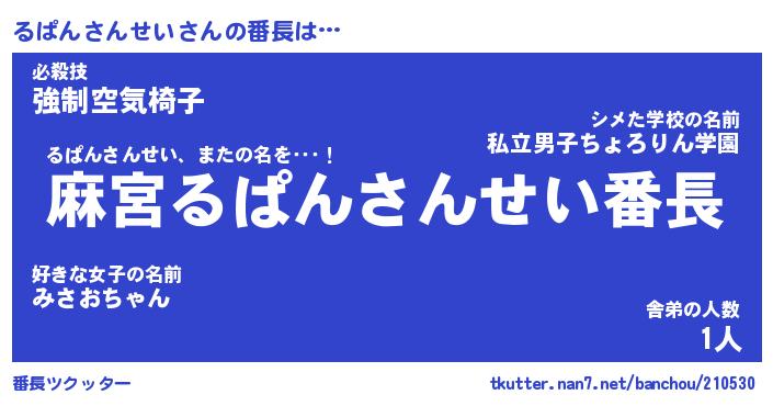 | 肩書あだ名 | 『るぱんさんせい御曹司』 |