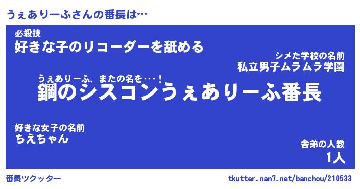 | 2回繰り返すあだ名 | 『うぇうぇ』『ううぇぇ』『ぬらぬら』 |