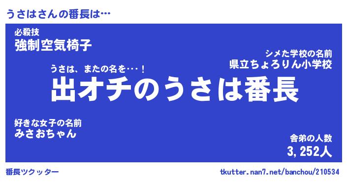 | 肩書あだ名 | 『うさは御曹司』『うさは大統領』 |