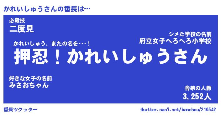 | 肩書あだ名 | 『かれいしゅうCEO』『かれいしゅう大統領』 |