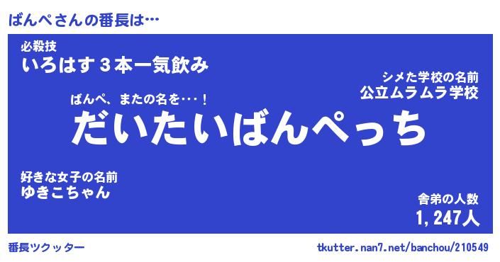| 意味不明あだ名 | 『ペロリンばんぺ』『ばんぺフォーエバー』 |