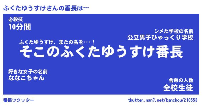 | 男性向けラノベタイトル風あだ名 | 『ふくたゆうすけの憂鬱』 |