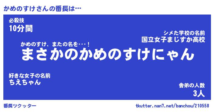 | ファンタジー風あだ名 | 『カメフェル』『エターナルカメノスケー』 |