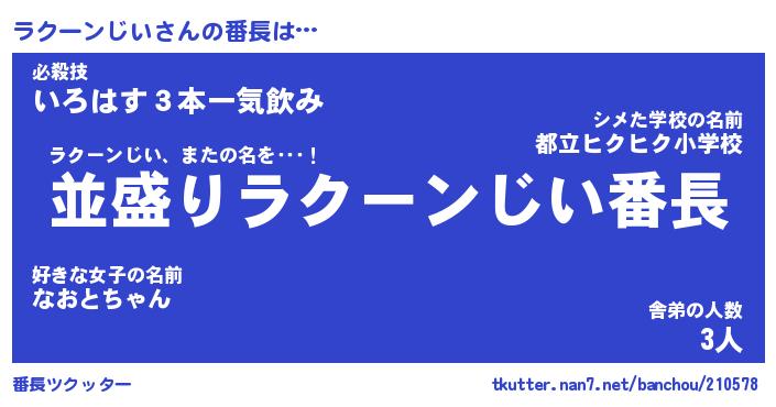 | ヒーロー風カッコイイあだ名 | 『スーパーラクーンジイ』『魔戒騎士ラク』 |