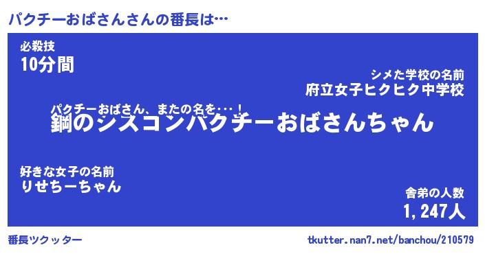 | ツイッター | パクチーおばさんさんのツイッターID『namakemono_idle』 |
