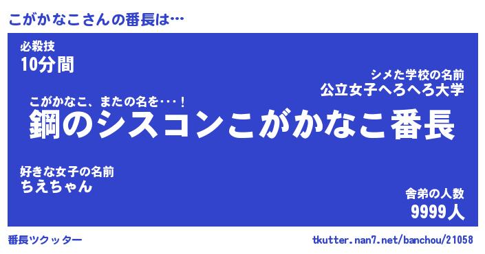 | 肩書あだ名 | 『こがかなこ店長』『こがかなこ大統領』 |